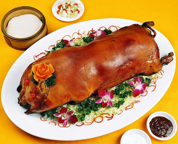 猪皮含大量胶原蛋白,有养颜健肤功能。乳猪较瘦,脂肪含量少,老年人亦也放心食用。