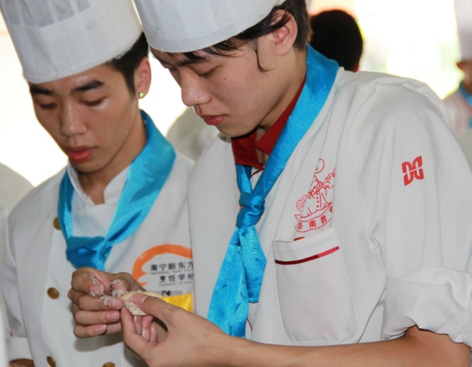 来到广西华南烹饪学校你可以看到,学生身着白色的统一厨师服和橙色的校服,起居时间整齐划一;模拟餐厅、实训基地、教学楼、就业指导中心、报名咨询中心、学生公寓等卓越环境加上先进的科学的管理模式,是学生学习成才的好地方。