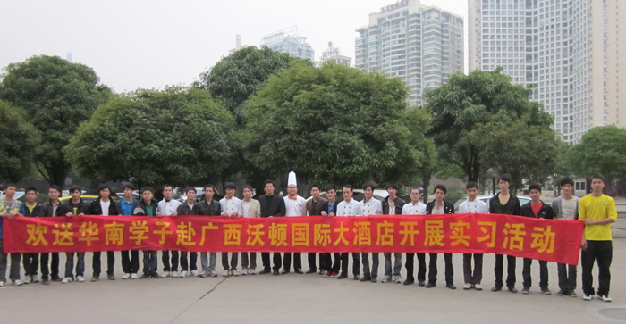 3月14日,我校隆重举行欢送仪式,欢送我校大厨精英4班30名学子赴广西沃顿国际大酒店实习,此行也为我校2011年毕业生就业工作拉开了序幕。
