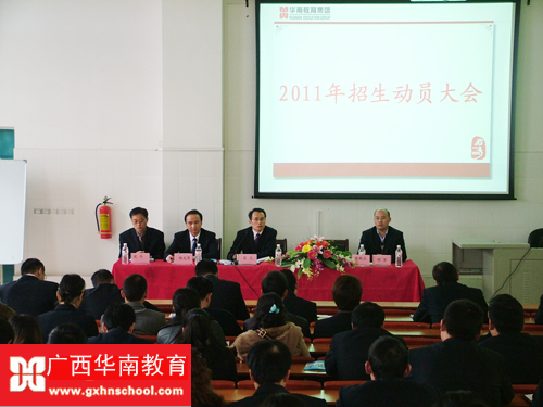 会议由校长助理郑文军主持,会议首先宣读了我校的聘任通知,聘请徐新亚律师为华南教育集团法律顾问,随后宣读长安集团公司对华南教育集团2011年的招生工作要求及市场部的人事调整通知。宋凡校长在会上作重要讲话并布署2011年度招生工作,一是全体教职员工须统一思想,提高认识,努力完成2011年春季招生任务,学校继续实行全员参与招生,人人树立责任感和危机感。二是明确任务,科学谋划,加大宣传投入、加大地面推广增强招生力度,认真抓好招生工作每个环节,广大教职工要认真学习领会学校的专业设置、招生政策和优惠办法,实事求是地宣传学校,热情报务新生和家长,让学生和家长感受到学校的独特魅力;向学生、家长充分展示学校的办学成果、办学优势和专业特色等,以良好的对外形象和雄厚的办学实力吸引更多学生到学校就读。三是进一步加强内涵建设,营造良好职教氛围,让学生树立责任心和荣誉感,树立榜样来影响和带动招生。
