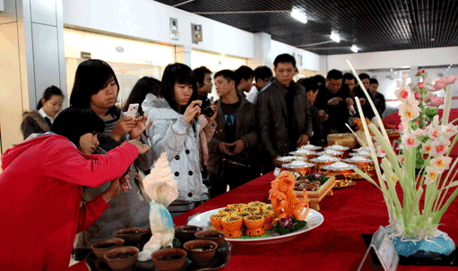 热菜作品展示引来市民的围观和拍照