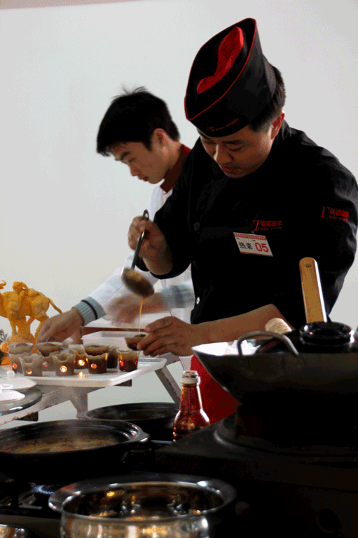 热菜烹饪现场,20名华南学子无偿为大赛提供后勤服务