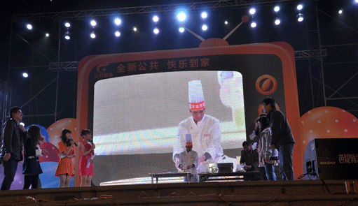 我校领导朱伟带领老师和学生参加这次大型跨年宣传推广活动的飞饼绝活表演。通过这次表演活动,体现我校教师良好素质和精神风貌,让广大市民对我校厨师专业“厨师--热门行业,高薪职业,永不失业”有了更加深刻、生动的认识。