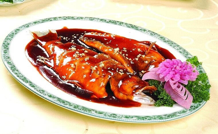西湖醋鱼色泽红亮,吃起来,鱼肉嫩美,带有蟹味,酸甜可口,别具特色。西湖醋鱼用草鱼,草鱼含有丰富的硒元素,经常食用有抗衰老、养颜的功效。