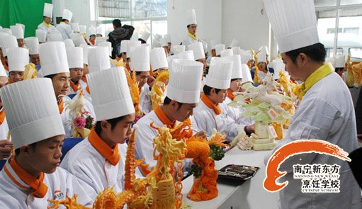 南宁新东方烹饪学校是南宁市西乡塘区劳动和社会保障局批准的大型烹饪专业学习,是培养国家中级烹调师、技师和烹饪管理人才的国际餐饮教育基地。学校师资力量雄厚,拥有一支素质高、技术强、教学精而著称的高级烹调师、高级技师为骨干的专业教师队伍。学校教学设施先进,拥有全国先进的不锈钢粤式弹头炒炉100多台,全国首创配备大功率商用电磁灶、弧形演示教学教师等。互动的“模拟餐厅”教学,开创了烹饪教育先河,从根本上保证了学校的教学质量。学校管理严格,采用先进的“二元”管理模式,在教学上实施“技能+素质”一体化教育,一方面注重学生技能的培养,为学生提供更多的学校实践机会,另一方面重视学生综合素质教育,定期开展丰富多彩的校园文化活动,让学生在学习当中得以放松。