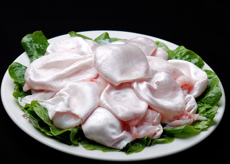 鱼肚是用鱼的鳔加工而成。市场上常见的鱼肚都是干制品。食用时须事先泡发,方法有水发和油发两种,发后再烹制各种佳肴。鱼肚不仅是名菜佳肴,且有较好的药用价值。具有补气血、润肺健脾、滋肝养胃、止血抗癌等功效,最适合老年人食用。