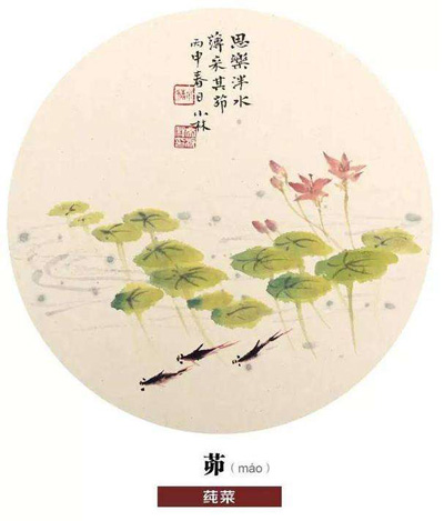 诗中的“茆”指的是莼菜。《诗经》的时代,莼菜在长江黄河流域的大江小湖里很常见,但随着后世水质日渐污染,莼菜已经很难在自然水域见到了。莼菜最著名的做法是西湖莼菜羹。