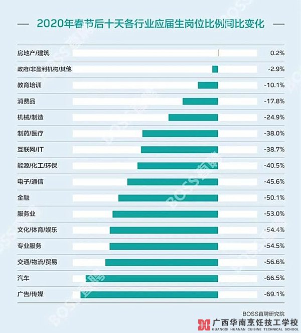 目前,各大学校的复课时间未定,疫情也致使春招前景不明朗,根据BOSS直聘发布《2020年春节后10天人才趋势观察》,各大行业发布的应届生岗位数量都在缩减。