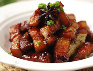 五花肉、葱、香叶、八角、酱油、料酒、可乐、油、盐