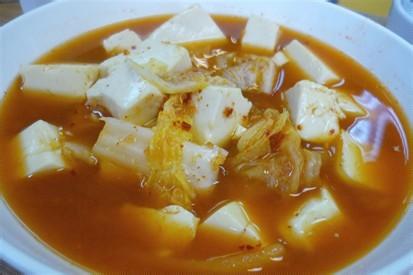 泡菜、豆腐、猪肉丝、金针菇、油、辣椒酱、白糖、葱