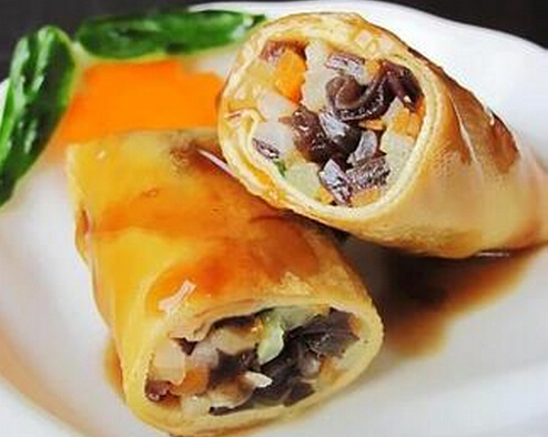 5.蚝油加水加生粉打成芡汁,淋在腐皮卷上,上锅蒸3分钟即可。