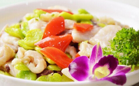 主料:浄草鱼 (400g) 去壳蚕豆瓣 (150g) 红椒 (10g)