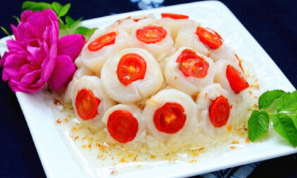 荔枝、圣女果、糯米、葡萄干、桂花蜜汁。
