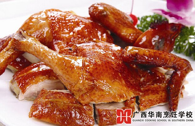 原料:鸡1只,麦芽糖4克,生粉50克,白醋100克,白卤水2500克,花生油200克。