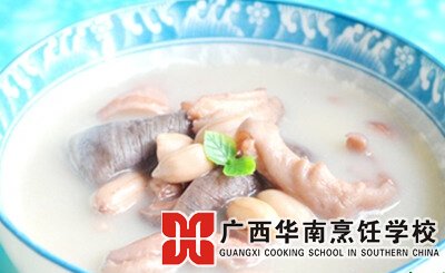 3、把适量清水煮沸,放入猪肚、花生煮沸后改慢火煲2小时,加盐调味即可。