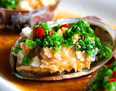 原料:鲍鱼、料酒、白醋、柠檬汁、姜蒜、蒸鱼豉油。