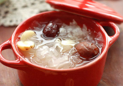 原料:莲子、银耳、薏米、枸杞子、冰糖、水适量
