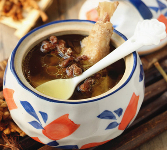 原料:鸡400克、枇杷花12克、蜜枣2个、瘦肉少许、水适量、盐适量