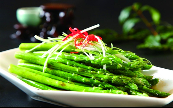 汆烫芦笋用大火,快速汆烫一分钟左右或者至水再次滚开即可,水里面加盐,捞出过凉水可以保持芦笋脆嫩的颜色,芦笋痛风者不宜多食!