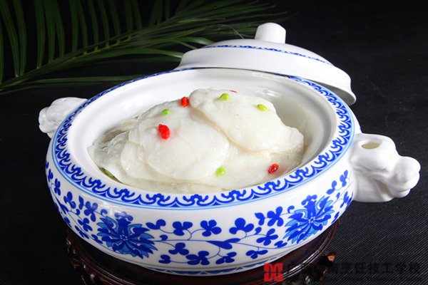 调料:绍酒25克、精盐2克、味精1克、水淀粉25克、鸡清汤50克、干淀粉5克、熟猪油1000克(实耗100克)