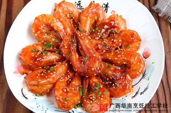 主料基围虾500克,油50毫升,白糖1汤匙,番茄酱2 汤匙,白芝麻少许,生姜10克,葱段10克,料酒15毫升,盐3克。