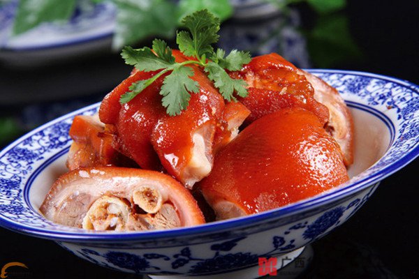 5、在此过程中,加入盐和味精,还要把制成的焦糖色不断地加入水中,使猪蹄上色;