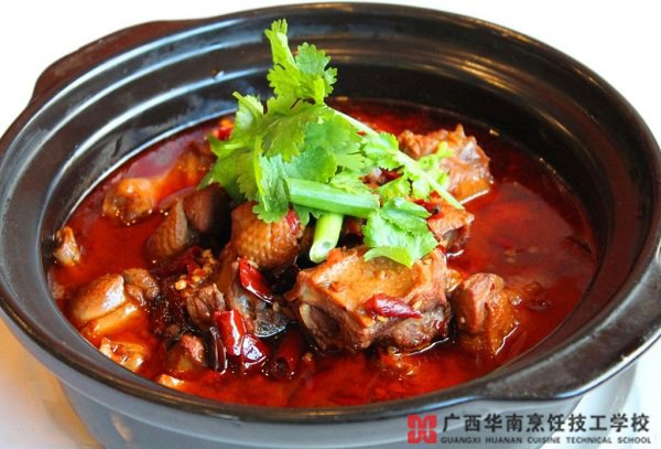 4、捞出花椒后继续爆香姜蒜、桂皮八角和干辣椒。