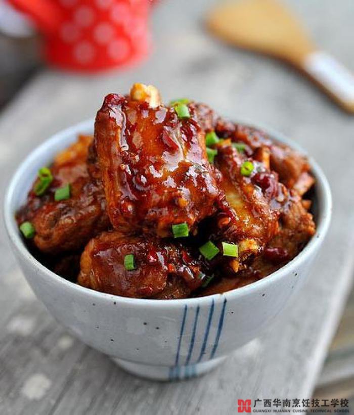 食材:排骨、蒜蓉辣酱、葱姜、白糖、生抽