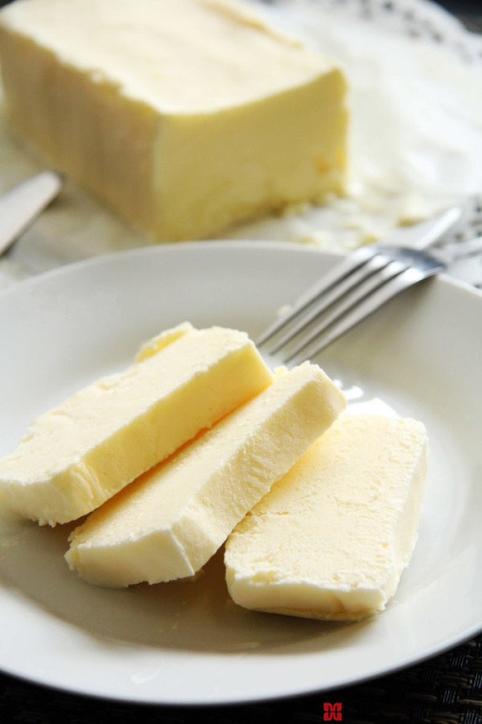 4、倒入铺好油纸的方形容器中,放冰箱冷冻至硬即可。