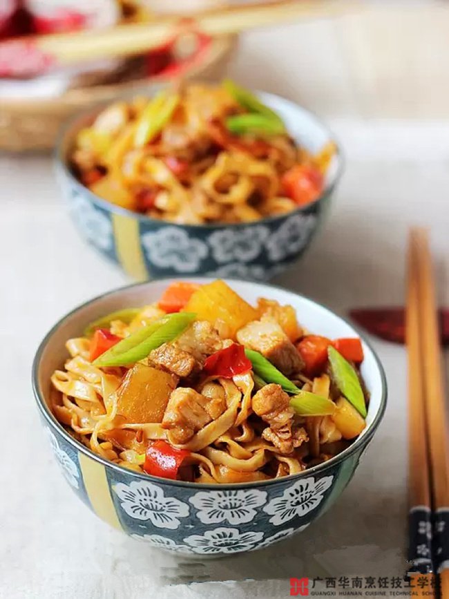 食材:自制宽面400克、五花肉100克、洋葱1/4个、土豆1个、胡萝卜1/2个、青蒜1根、油1大勺、郫县豆瓣酱2小勺、糖1小勺、蚝油1小勺、盐1/2小勺、香油几滴