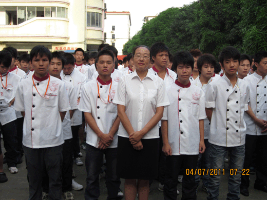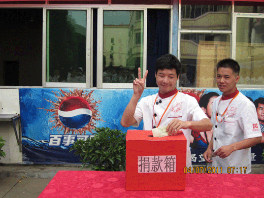 广西华南烹饪学校校领导为捐款作重要讲话