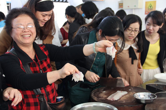 大师出神入化的厨艺 让现场的女同胞们惊叹