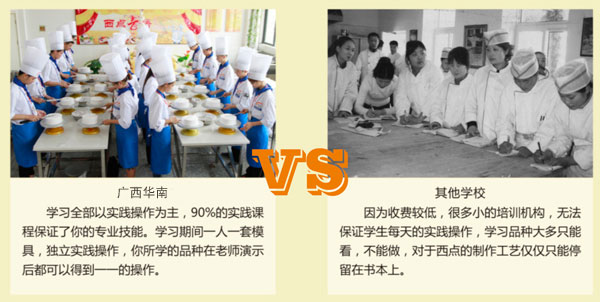 近年来随着国内技能型人才短缺,职业人才越来越受到重视,越来越多的初高中毕业生也乐意选择学一门技术作为自己的起步点。西点专业凭借其起点低、就业好、薪水高、环境佳等优势成为很多90后女生的首选。在选择学校时,越来越多的家长愿意把孩子送到广西华南,学西点,为什么只选广西华南烹饪学校?广西华南到底好在哪里?在这里我们通过实际对比方式,带你了解广西华南烹饪学校。