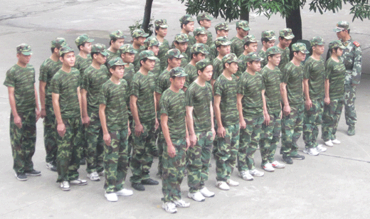 从早上7点半开始,操场上就陆陆续续出现了他们的身影,一袭袭绿色的军服,映衬着晨曦的光芒,成了校园里一道亮丽的风景线。8点整,所有的军训的同学们全部到齐。班主任黎老师对班级进行人员清点。同学们在食堂前的操场进行军训,担当本次军训的夏教官庄重严肃、英俊潇洒、精神抖擞,当他迈着整齐的步伐从学生面前走过时,又一次迎来了阵阵热烈的掌声。