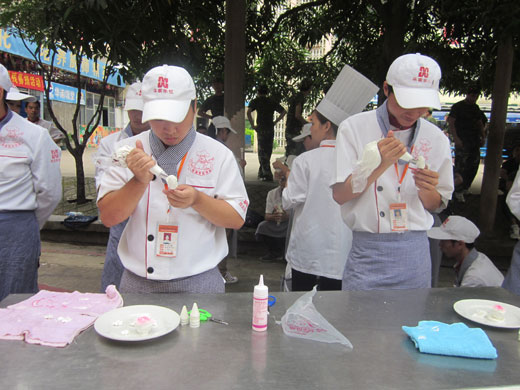 我校将在2011年8月3日(星期三)上午9点在五栋实操楼前面操场举行首届面点专业技能比赛,此次比赛会由西点速成班、西点半年班、裱花班和中点班四个班同学参加。