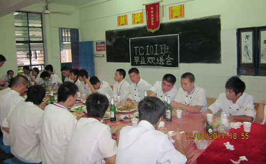8月18日下午,广西华南烹饪学校和TC101班毕业生欢送会在广西南宁明秀校区102教室隆重举行。校区负责人魏兆权主任、总务处长万家国、教务处主任陈新超、班主任司胜东和全体毕生同学一起怀着激动的心情参加了欢送会。