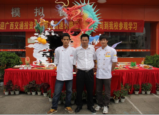2013年7月24日下午,广西华南烹饪学校一楼大厅出现了一道亮丽的风景线,学校金牌一、二班的毕业生,在大学路校区模拟展厅前,举行了一次别开生面的毕业作品展活动。