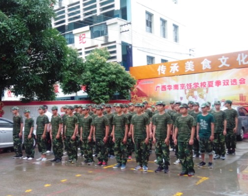 军训是广西华南烹饪学校的学员们入校后的第一课,在这堂课中,同学们洒下了辛勤的汗水,收获的将是顽强拼搏的意志、团结友爱的精神、坚忍不拔的意志、百折不挠的精神、宽广博爱的胸怀、艰苦奋斗和脚踏实地的作风。这一切都将会是同学们这一生中无比美妙的记忆和宝贵的财富。