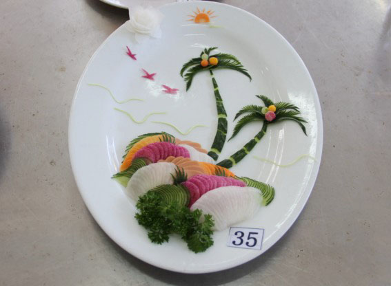 在实践操作考试中,考生们表现优秀,每位考生的拼盘作品创意十足,各式各样的图案栩栩如生,诱惑力十足。得到了评委们的一致认可和好评。