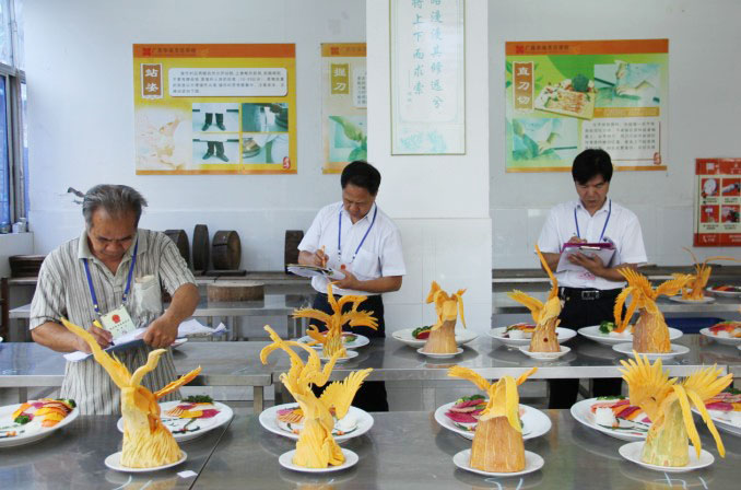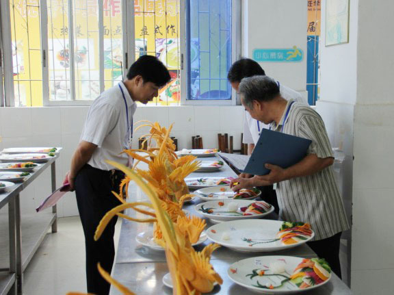 上午8:30分左右广西华南烹饪学校2013年两年制大厨精英班115班毕业考试正式。