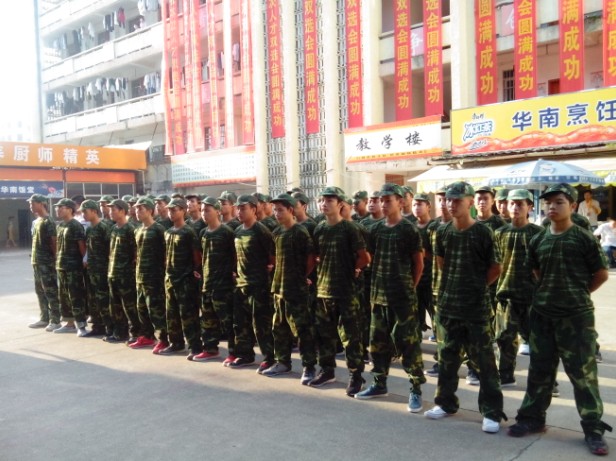 他们朝气蓬勃,军姿飒爽,军训是广西华南烹饪学校的学员们入校后的第一课,在这堂课中,同学们洒下了辛勤的汗水,收获的将是顽强拼搏的意志、团结友爱的精神、坚忍不拔的意志、百折不挠的精神、宽广博爱的胸怀、艰苦奋斗和脚踏实地的作风。这一切都将会是同学们这一生中无比美妙的记忆和宝贵的财富。