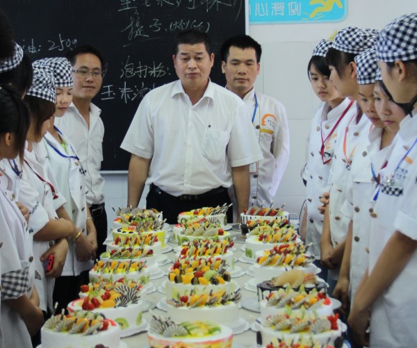 广西华南烹饪学校大学路校区教务主任黄盛大师给予了西点四班同学们充分的肯定,“对比上一次的的阶段成果展示,同学们现在的技巧有了很大的提高,希望同学们再接再厉,争取以后做出更多更好的作品来。”