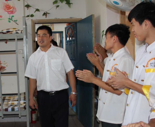广西华南烹饪学校教务主任黄盛大师检查学生宿舍