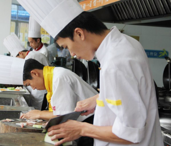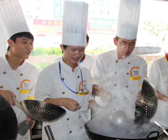 10月17日上午,广西华南烹饪学校大厨121班在大学路校区实训大厅里举行热菜阶段性考核,经过前段时间的学习、准备,同学们的信心满满的,也相信他们能够考出好的成绩。