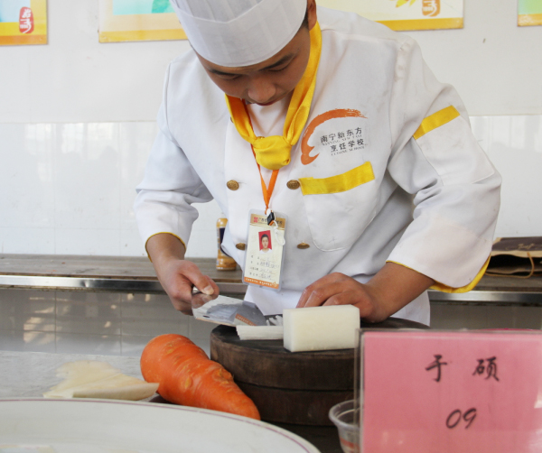 为了检验学习成效,进一步提升学子们在刀工方面的基本功技能,广西华南烹饪学校会定期组织学生基本功技能考核,让同学们反复练习刀工、熟练刀工、掌握刀工。刀工作为广西华南烹饪学校基本功教学内容之一,是每一个入校学子的必学课程,也是同学们掌握烹饪技能的必备要素。此次考核要求同学们在规定的时间内雕刻月季花同时把萝卜等原材料切成丝、片、块、段等不同形状,不仅要要长短一致,还需要粗细均匀。