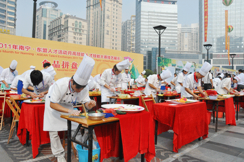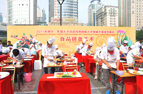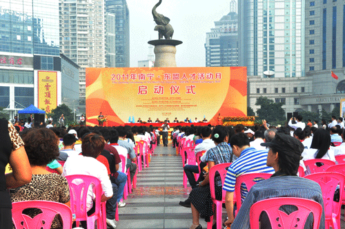 10月23日上午,南宁•东盟人才活动月启动仪式在金湖广场举行,活动月人才技能大赛也在本次的启动仪式上同时展开。来自泰国、柬埔寨等国领导、自治区、南宁市、和各部门等相关领导以及南宁市优秀人才代表等约600人出席启动仪式。