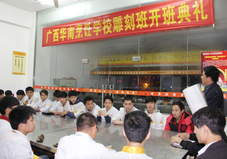 春天,万物复苏,世间一切物都充满了生机。在这春意盎然的季节了广西华南烹饪学校大学路校区雕刻班成功开班,雕刻班受到了学校领导的重视,得到了校区老师们的积极配合与支持,开班典礼还邀请到了校区创就业主任朱伟、中国烹饪大师黄盛、雕刻大师杨罗银、及雕拼组各科老师代表参加。