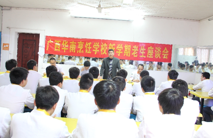 随后,教务主任黄盛大师以幽默风趣的语气给同学们讲解了在下一步同学们将会学的知识,并嘱咐同学们要认真学习,争取早日成为一名合格的厨师精英。