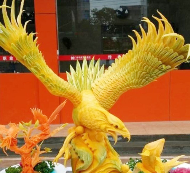 此次雕刻阶段性考核同学们精彩的作品得到了评委老师的赞扬和肯定,但是还有个别同学还要加强学习,争取下一次雕刻出更好的作品。在此次雕刻基础阶段考核中,同学们把平日学到的东西发挥的淋漓尽致,雕刻出了不少好的作品出来。在作品展示过程中看到平日里的果蔬在同学们的手中雕刻成一件件艺术品,由此可知他们的雕刻水平已经有很大的提升。