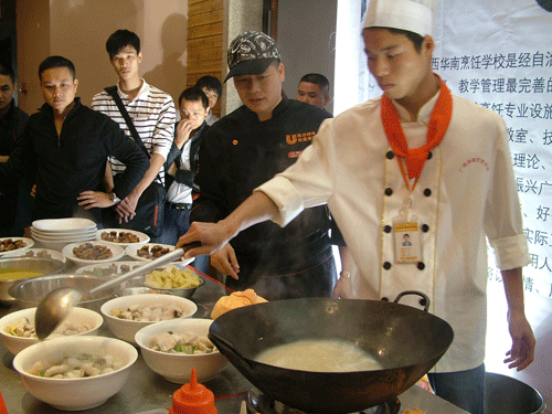 我校学生现场烹饪引人注目